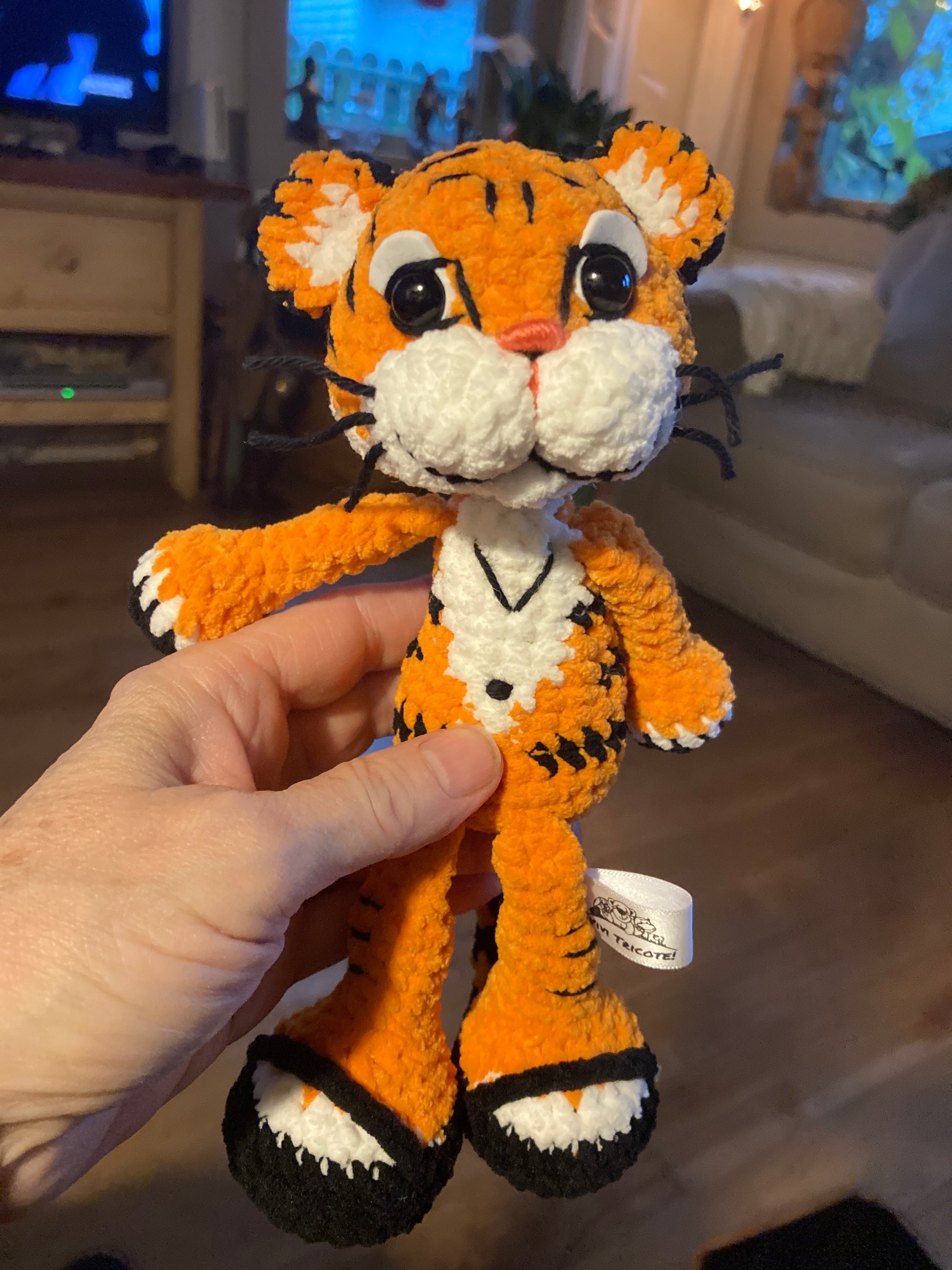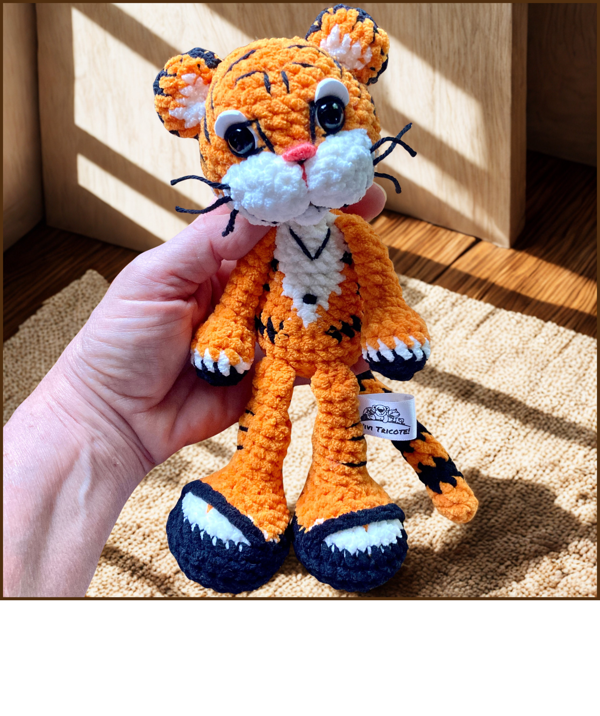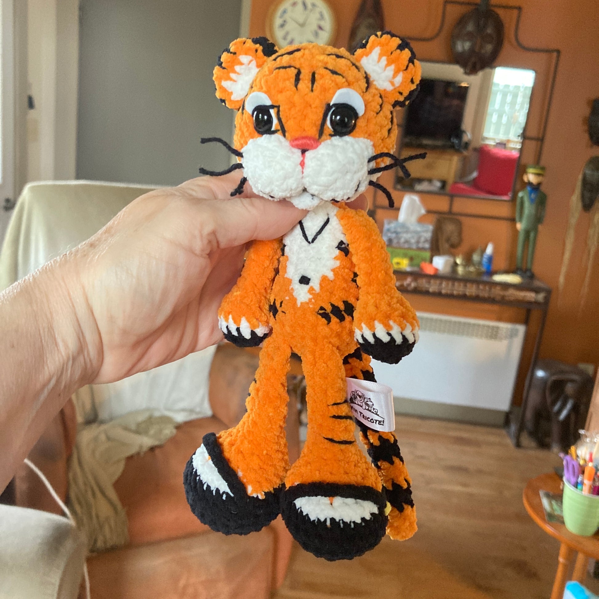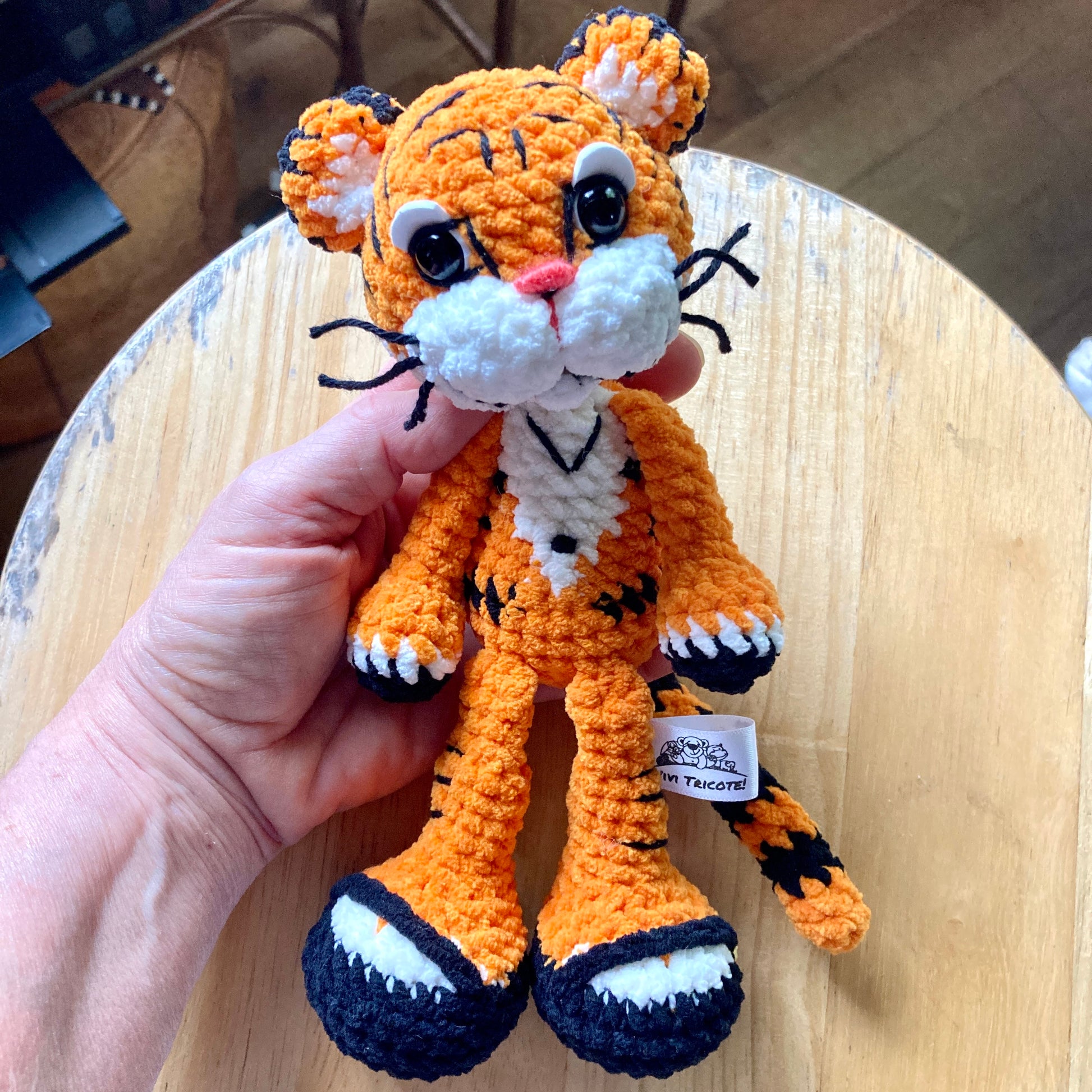 Tous mes Minis tigres et leurs compagnons sont confectionnés à la main, au crochet, avec beaucoup d’amour et d’attention dans un environnement sans fumée.