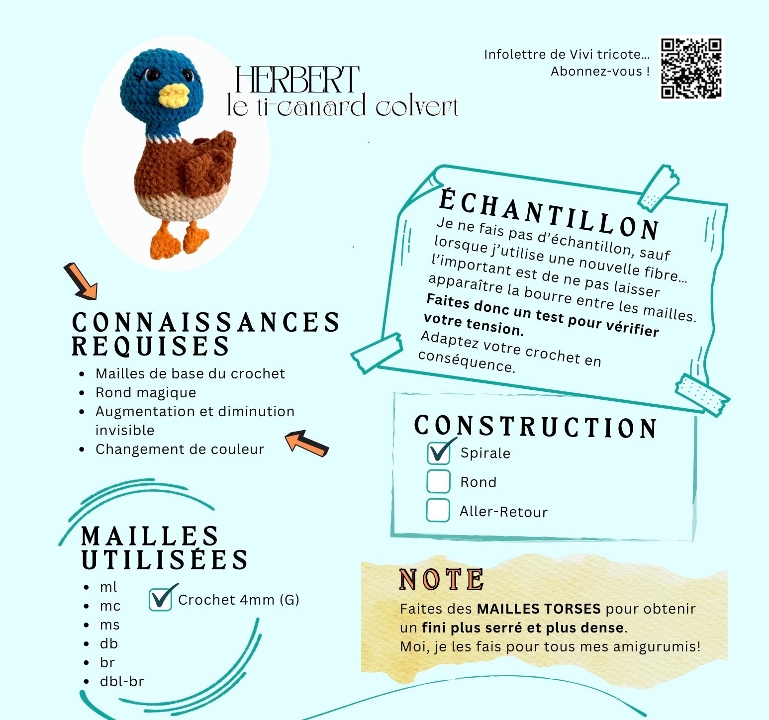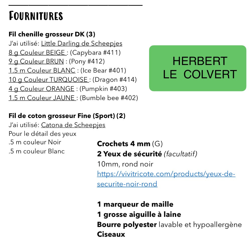HERBERT LE ti-canard COLVERT - PATRON AU CROCHET à télécharger, tutoriel PDF FRANÇAIS